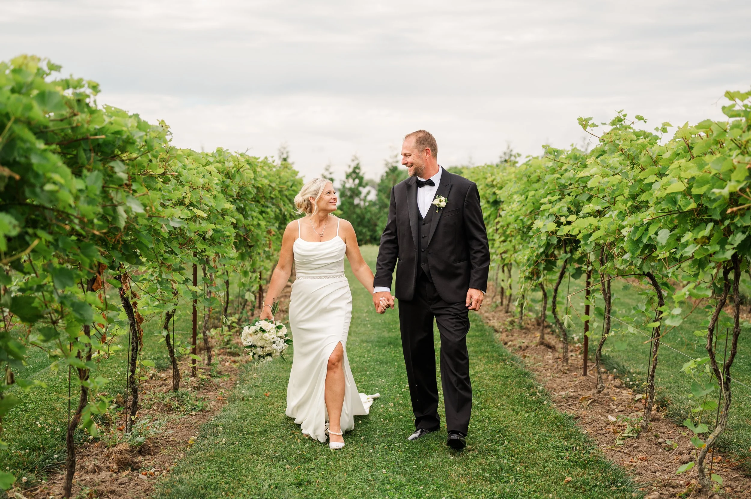 Amy and Mark's journey began with their daughters playing soccer together, but it wasn’t until a trip to St. FX University in Antigonish, Nova Scotia, that things took a romantic turn. Amidst the chaos of Hurricane Fiona knocking out power, the couple had one sunny day to hike up Keppoch Mountain, where Mark proposed while Amy was snapping a selfie. Their vision for their wedding was an intimate celebration with close family and friends, set against a beautiful backdrop. Hessenland Inn & Schatz Winery turned out to be the perfect venue, offering stunning photo opportunities with lush gardens, waterfalls, and vineyards, all while accommodating their guests with a lovely menu and on-site lodging.